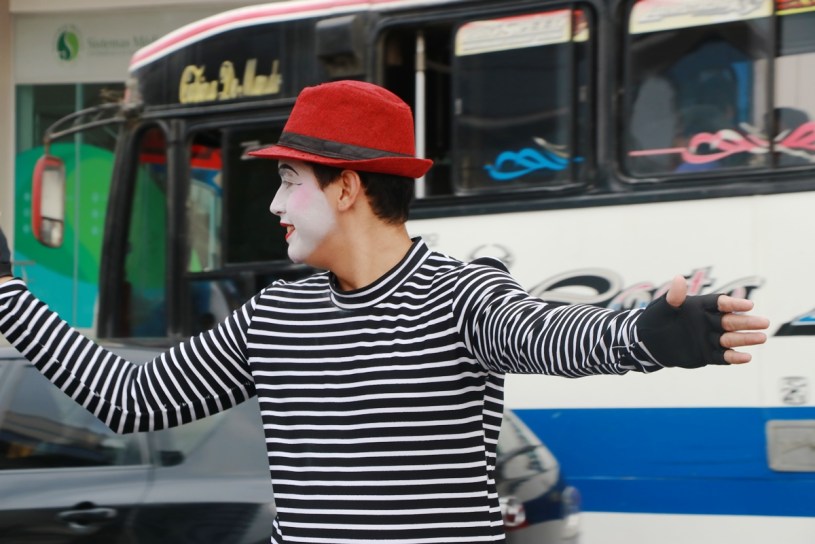 En estos días de diciembre hay mimos disfrazados que van por las calles de Manta llamando la atención de los conductores de automóviles y haciéndoles notar los riesgos que corren sus vidas, y la de terceros, por conducir incorrectamente o no usar los accesorios de seguridad. Son parte de una campaña municipal para evitar accidentes de tránsito y las consecuentes lastimaduras o pérdidas de vidas.