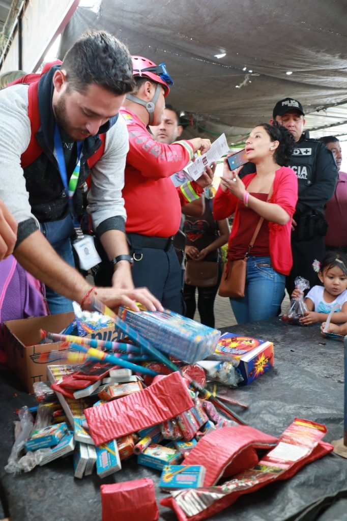 Considerando la prohibición legal de vender pirotecnia explosiva, La Dirección Municipal de Control Territorial -junto a Policía Nacional, Fuerzas Armadas y Cuerpo de Bomberos- realiza operativos continuos para el decomiso y control de la venta ilegal de explosivos.