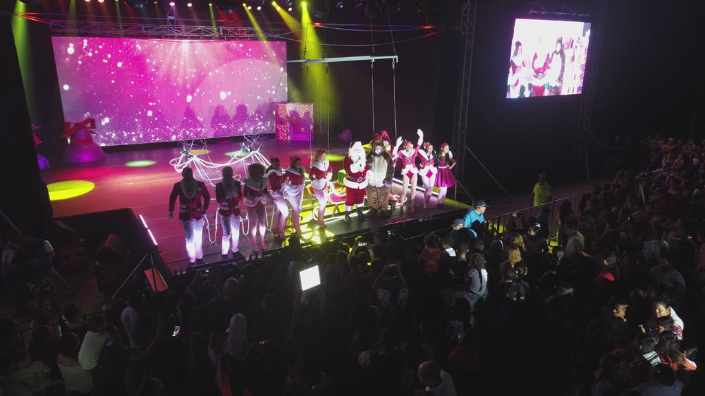 Antes de que Papá Noel hiciera delirar al público con su mágica llegada desde el aire, se puso en escena una historia del verdadero significado de la Navidad, dramatizada por personajes infantiles que jugaron con la imaginación, sobre todo de los niños.