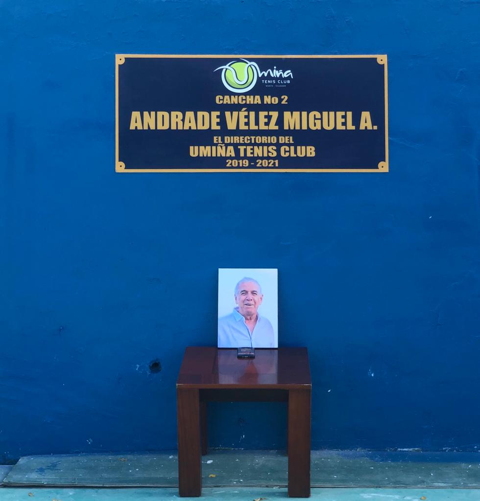 La cancha principal del Umiña Tenis Club (UTC) llevará el nombre del doctor Miguel Andrade Vélez, como tributo póstumo de reconocimiento a su legado como tenista ejemplar, socio distinguido y abnegado profesional médico de Manta.