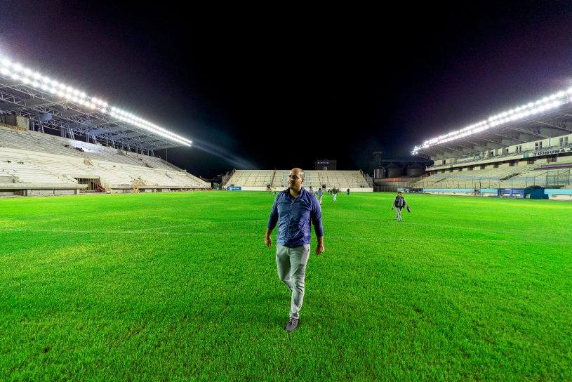 Por ello, el alcalde de Manta, Agustín Intriago, la noche del domingo 16 de febrero visitó el escenario deportivo para constatar la instalación de las nuevas luminarias y supervisar los trabajos de la nueva tribuna, que registra un 85 % de avance.