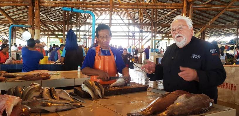 El chef alemán-estadounidense Walter Staib, productor y conductor del famoso programa de cocina televisivo “A Taste of History” (en español: Una muestra de historia), estuvo en la ‘Playita Mía’ de la ciudad de Manta y quedó encantado con el animado comercio de pescado fresco que se hace cada día en el Mercado Municipal de Pescados y Mariscos allí establecido.