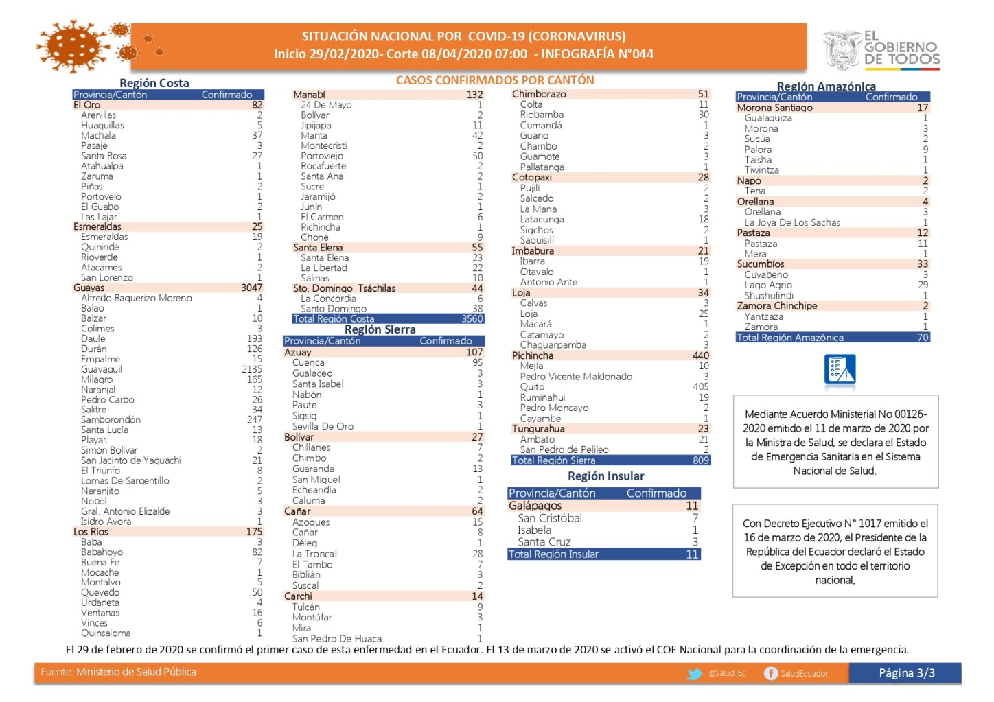 Veamos a continuación las infografías elaboradas por el MSP, que muestran con detalle los datos de cada una de las 24 provincias del país: