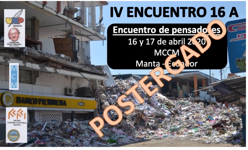 Para este año 2020, durante los días 16 y 17 de abril, se tenía previsto el IV ENCUENTRO 16-A con la participación de jóvenes quienes, en un ENCUENTRO DE PENSADORES, expondrían sus vivencias, reflexiones y propuestas para superar la estela psicosocial que aún perdura en los sobrevivientes, en los damnificados y en sus familias.