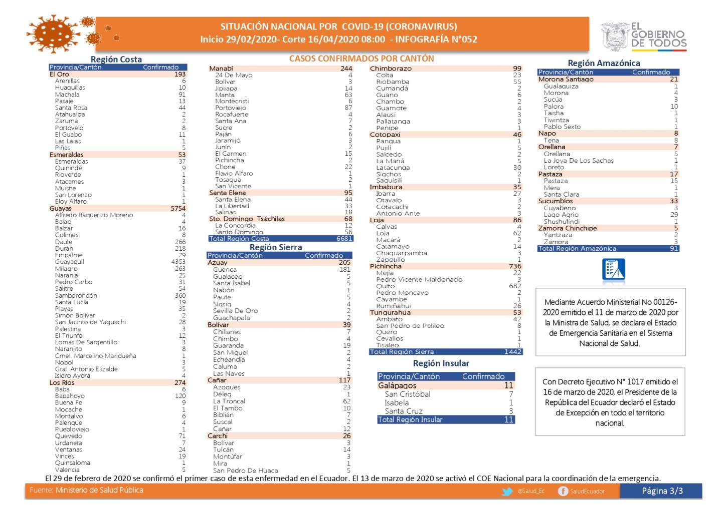 Revise cuidadosamente las infografías que insertamos a continuación, que muestran, con detalles geográficos y cifras particularizadas, el avance de la pandemia en cada provincia y cantón del país (Haga clic sobre uno de los cuadros para ampliarlos).