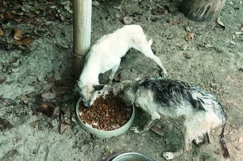 Los jóvenes Yander Álava y Anggie Meza son los rescatistas de los canes y llevaron a estos al lugar seguro donde hoy se encuentran y reciben el trato que merecen. Allí son aseados, desparasitados, alimentados, vitaminados y vacunados. Porque llegaron desnutridos y llenos de garrapatas.