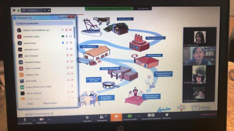 De forma virtual, para precautelar su seguridad, los técnicos de Arcsa explican los protocolos en la recepción de los productos que se utilizan para la preparación de los alimentos, conservación de la cadena de frio, las normas higiénicas en el transporte de comidas preparadas, manejo de desperdicios y control de vectores.