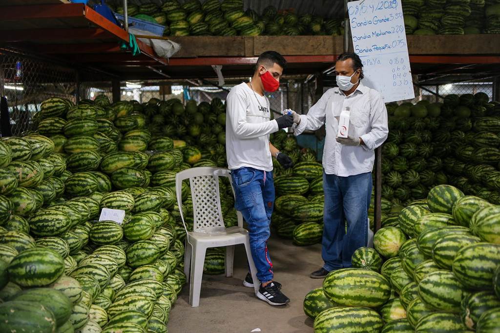 Con el reparto de mascarillas a las personas que se concentran en los mercados de abastos y otros comercios concurridos, la Administración municipal de Manta nos permite apreciar, en fotos, el ambiente actual de esos sitios.