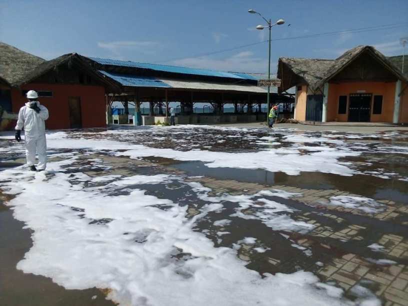 Estos operativos especiales de limpieza se realizan tras darse la alarma de un caso positivo de covid-19 en el lugar. “Por encima de las actividades económicas siempre va a estar la vida de los hermanos y hermanas mantenses”, señaló el alcalde Agustín Intriago.
