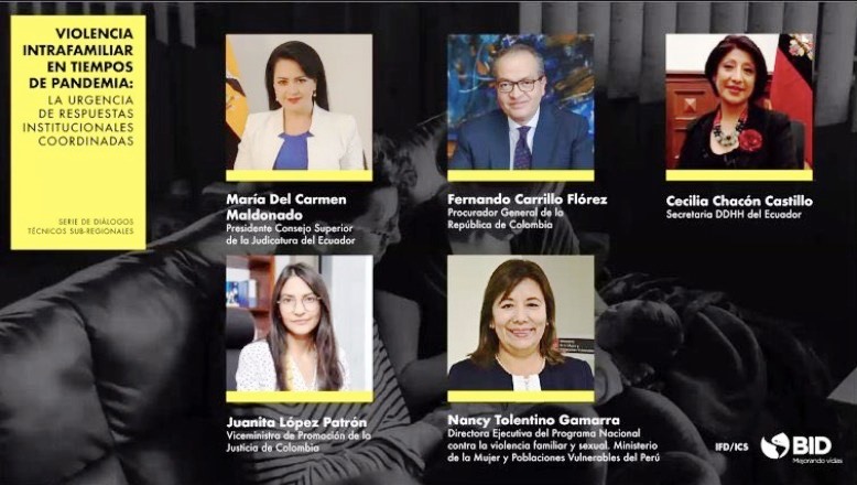 El diálogo fue organizado por el Banco Interamericano de Desarrollo (BID) y se realizó con la participación de autoridades del sector justicia, de la academia y de organizaciones civiles de Ecuador, Colombia y Perú. El objetivo fue analizar alternativas que permitan prevenir, atender y mitigar el aumento de la violencia intrafamiliar en América Latina y el Caribe, durante la pandemia de la COVID-19.