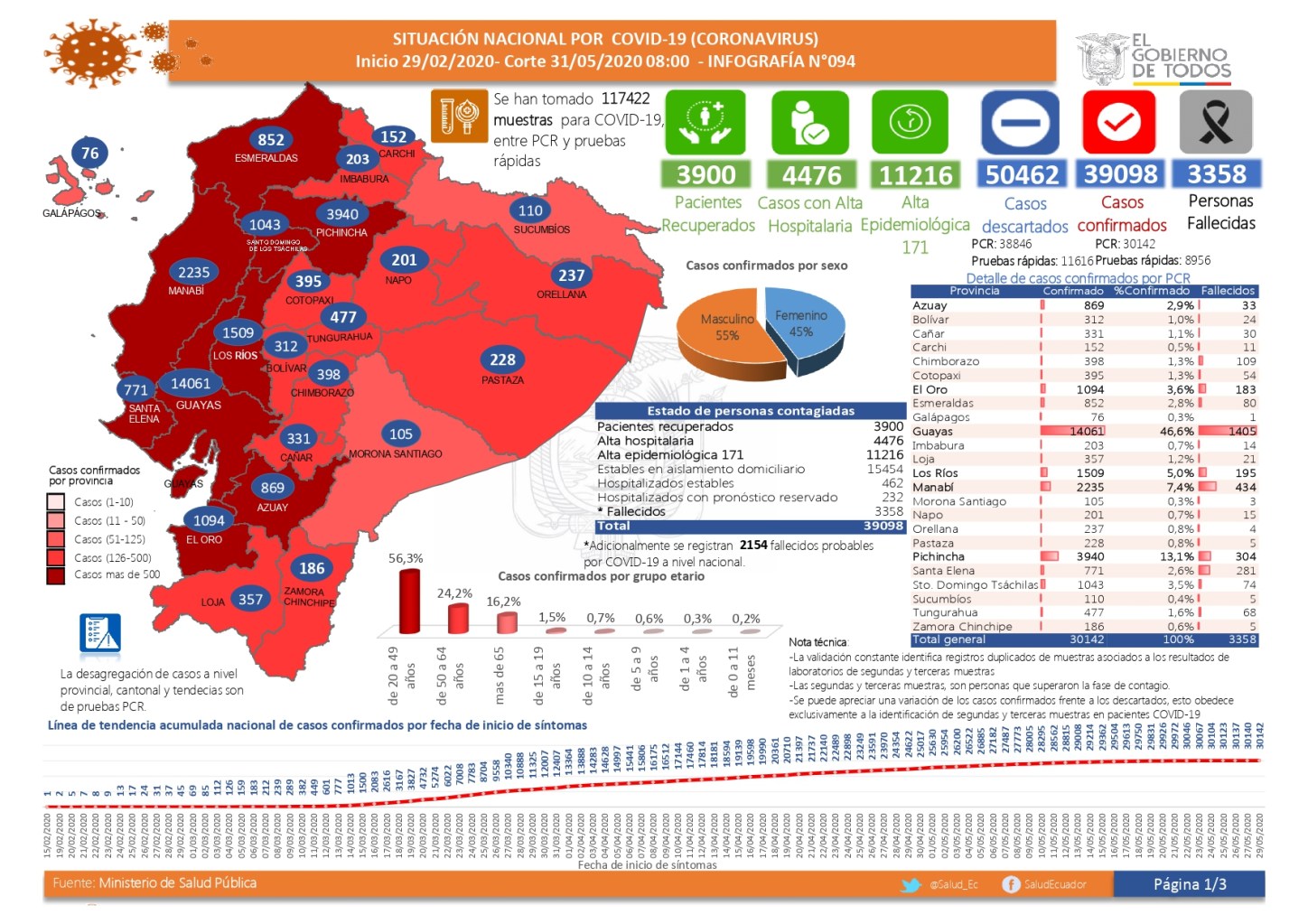 Siguen las infografías del reporte ministerial, con corte contable a las 08h00 de hoy, domingo 31 de mayo del 2020.