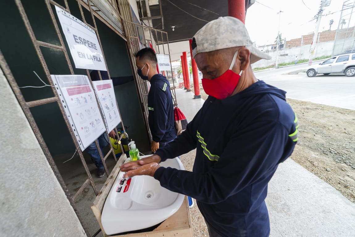 Este grupo humano utiliza cascos adaptados, con pantallas protectoras para el rostro, mascarillas, guantes de trabajo, buzos, pantalón largo y botas. Cada trabajador cumple con un proceso de desinfección frecuente durante las 8 horas de trabajo diario.
