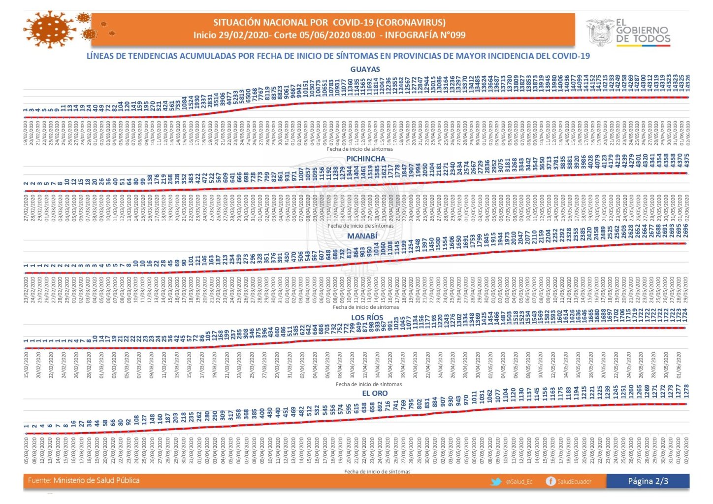 La creación de este nuevo evento de vigilancia asociado a COVID-19, que se publicará en las próximas horas en la página del Ministerio de Salud Pública: www.coronavirusecuador.com, provocó la caída del sistema durante el día de ayer. Superadas las dificultades informáticas, de inmediato se procedió con la publicación de la Infografía No. 098, correspondiente al jueves 4 de junio de 2020.