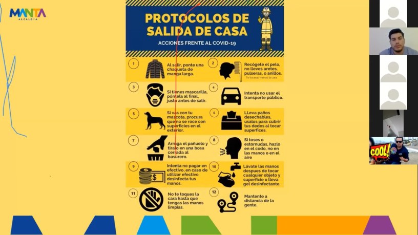 Tras la flexibilización del confinamiento social, procurada de manera responsable y progresiva, cientos de ciudadanos participan desde sus respectivos hogares en el taller virtual denominado “Capacitaciones Medidas de Seguridad”, organizado por la Universidad Laica Eloy Alfaro de Manabí (ULEAM) y patrocinado por la Administración municipal de Manta.
