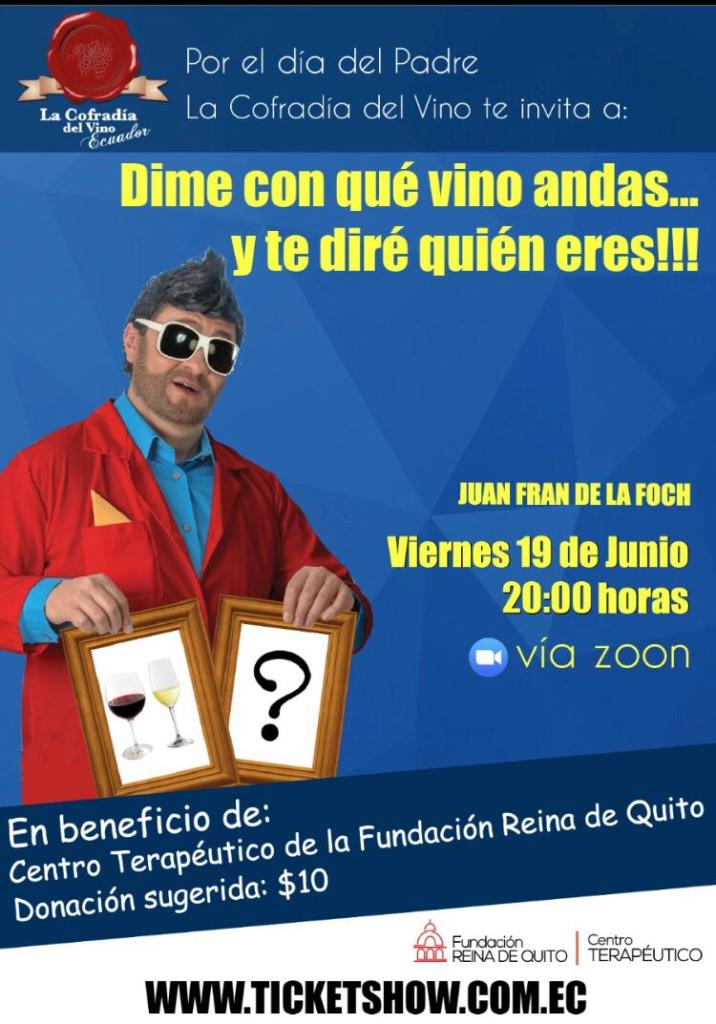 La “Cofradía del Vino” (Ecuador) trae a las pantallas electrónicas de todos el espectacular monólogo “Dime con qué vino andas… y te diré quién eres!!!”, del reconocido comediante Juan Fran de la Foch.