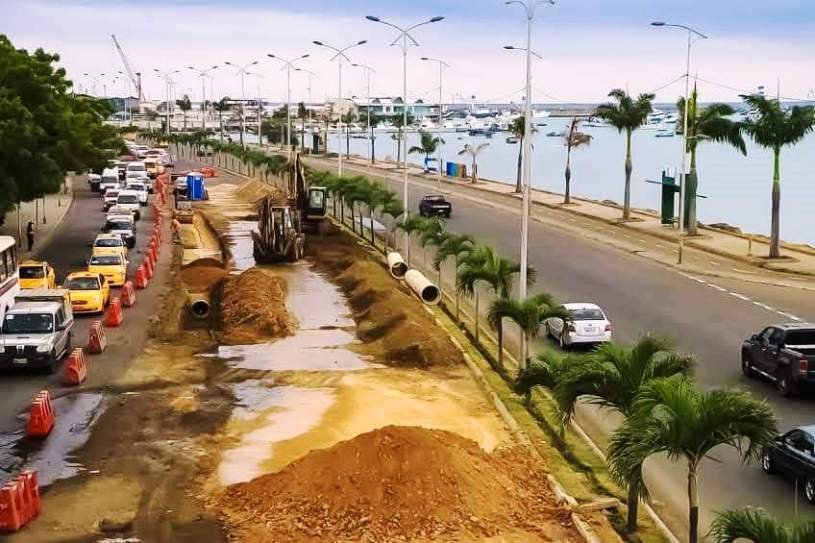 Con la construcción de un colector para recoger aguas lluvias, el Gobierno municipal de Manta ha retomado el proyecto del rediseño de la Avenida Jaime Chávez Gutiérrez (malecón).