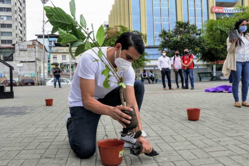 En paralelo, en la Plaza Cívica Eloy Alfaro hubo un acto encabezado por el concejal Jefferson Pihuave, presidente de la Comisión Permanente de Igualdad y Género del Concejo municipal. Allí, un grupo de activistas -respetando el distanciamiento y con las normas de bioseguridad- llevó a cabo su propia siembra simbólica, pero de manera formal como corresponde a las autoridades públicas.