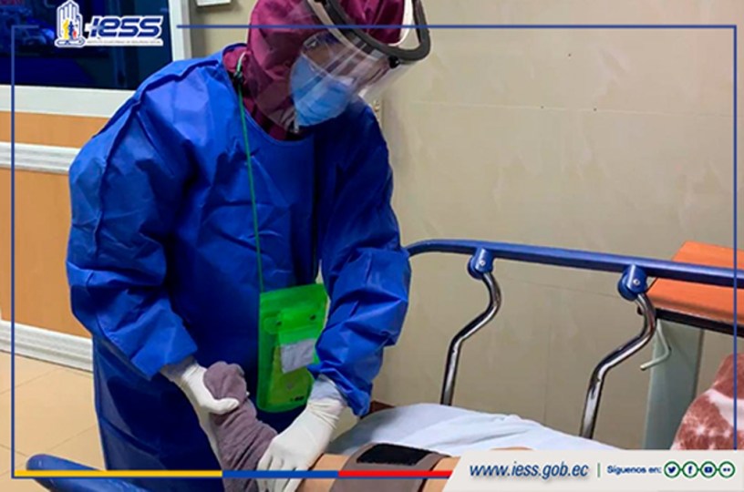 Los pacientes afectados por la COVID-19 que se encuentran internados en emergencia respiratoria del Hospital General Portoviejo, del Instituto Ecuatoriano de Seguridad Social (IESS), son sometidos diariamente a terapia física para que se recuperen totalmente y mejoren su movilidad.