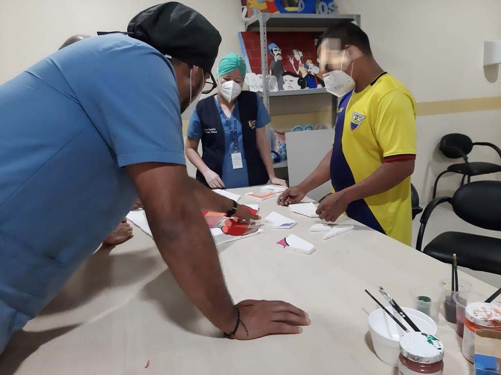 “Aquí se da un tratamiento integral a través de terapias psicológicas, grupales, de familia y ocupacionales. Los funcionarios son psicólogos, trabajadores sociales, enfermeros, auxiliares de enfermería, quienes hacen un trabajo integral. Además, tenemos reinserción a la parte educativa; en la actualidad lo hacen de manera online, pero antes de la pandemia lo hacían de forma presencial. A esto se suman las actividades deportivas que son apoyadas por el Ministerio del Deporte, con el programa Ecuador Ejercítate. Los internos también cuentan con un gimnasio, y como parte del trabajo de vinculación con la comunidad hacen deportes en una cancha del sector”, continuó García.