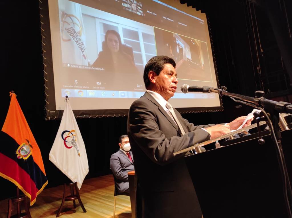 María del Carmen Maldonado habló durante una sesión solemne por el Día del Servidor Judicial ecuatoriano (24 de octubre), ceremonia que se adelantó y se hizo ayer, viernes 23 de octubre del 2020, por cuanto la fecha precisa de la celebración en este año cayó en día sábado, feriado de fin de semana.