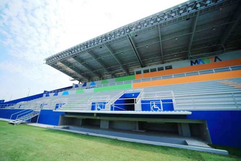 El Estadio Jocay de Manta (Ecuador) tiene ya todas sus graderías completas, al haber culminado la construcción de la tribuna oriental que sustituye a la antigua, dañada por el terremoto del año 2016.