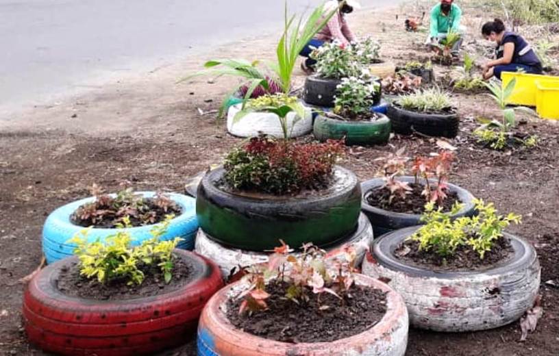 En el Barrio «Los Samanes», por ejemplo, el personal de Gestión Ambiental implantó diversos arbustos amigables con el medio ambiente. Es flora nativa, con algunas especies exóticas, para contribuir a la purificación del aire y la protección del suelo.