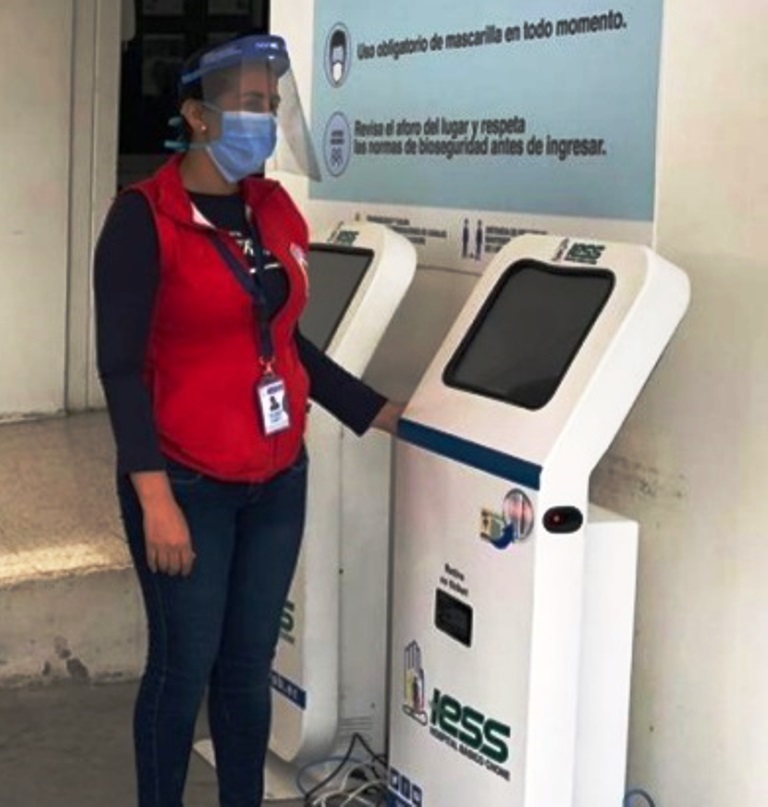 A fin de mejorar la calidad de atención a los pacientes del Hospital Chone, del Instituto Ecuatoriano de Seguridad Social (IESS), se implementó un sistema de pantallas digitales touch para la asignación de turnos.