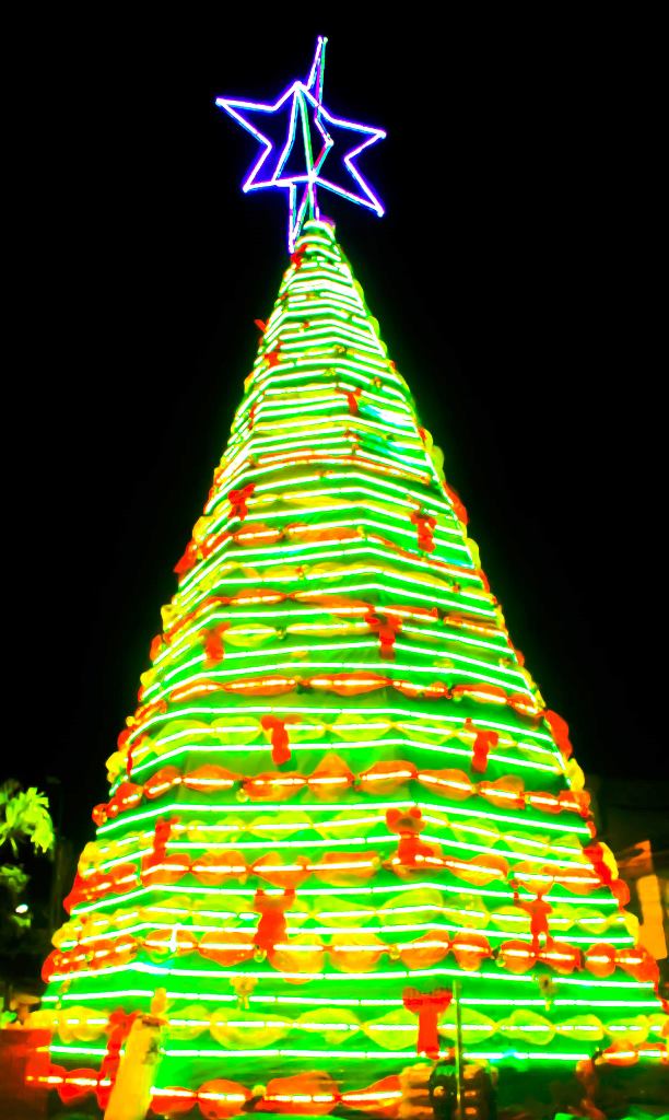 Ese inequívoco símbolo de la Navidad se halla profusamente iluminado con bombillas eléctricas, cuyo encendido simultáneo mereció un acto social público encabezado por la vicealcaldesa de El Carmen, Tania Mendoza.