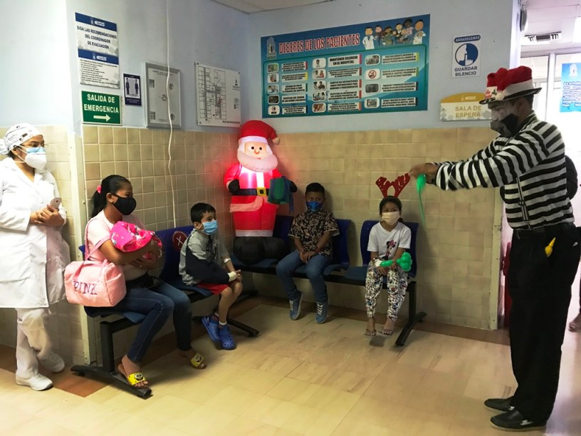 Los rostros de los pequeños pacientes eran de verdadera felicidad, mientras observaban a los personajes navideños que con juegos divertidos les arrancaban carcajadas; y, por un momento, se olvidaban de las razones por las cuales se encuentran internados en la casa de salud.