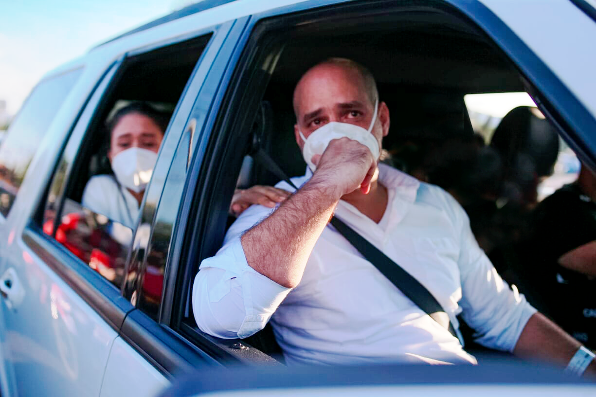 El alcalde se hallaba atravesando la ciudad de sureste a noroeste para dirigirse a su domicilio y encabezaba una caravana de automotores cuyas bocinas eran activadas para que su sonido anunciara el grato acontecimiento. Al paso, numerosos ciudadanos a pie vitoreaban al mandatario municipal y agitaban banderitas y globos de diversos colores.