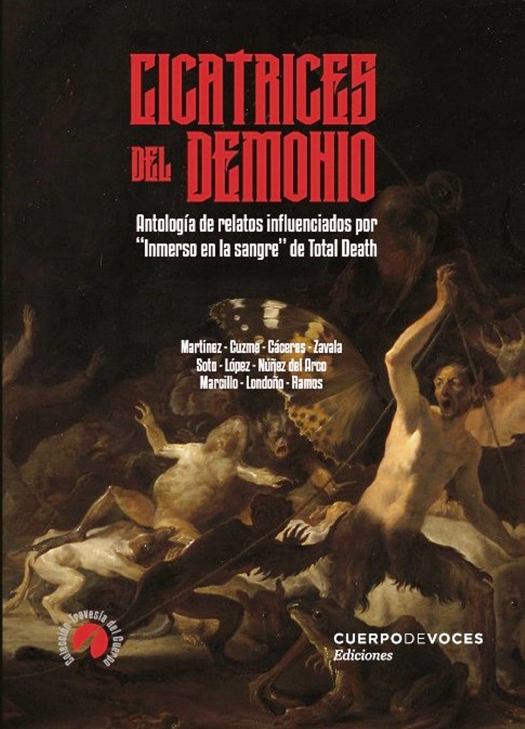 Un comunicado público de Cuerpodevoces Ediciones (Ecuador) anuncia que acaba de publicarse el libro “Cicatrices del demonio”, antología de relatos influenciados por “Inmerso en la sangre”, de Total Death.