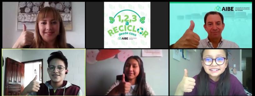 Durante el 2020, en el contexto de la pandemia y frente a una nueva realidad, la AIBE (www.aibe.ec) adaptó el “1, 2, 3… ¡A reciclar!” para continuar promoviendo la sensibilización y concienciación del reciclaje, en este caso desde los hogares donde se encuentran los jóvenes.