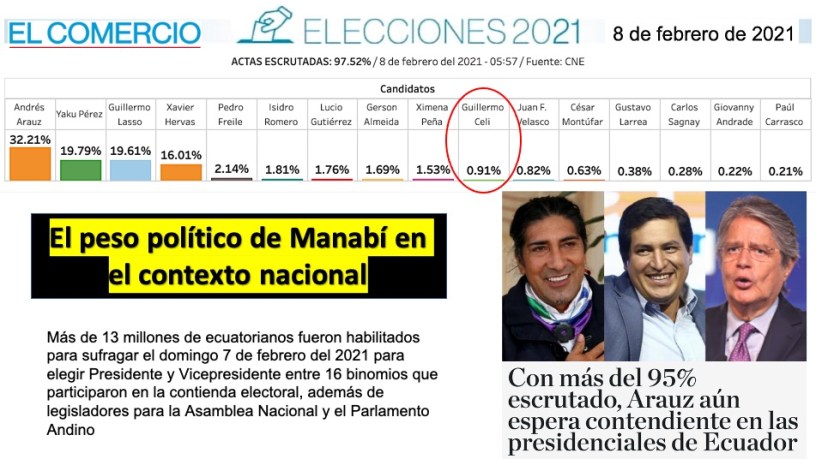 Cuando el señor Guillermo Celi Santos fue candidatizado para la presidencia de la República, se volvió a escuchar el mismo discurso sobre que Manabí debería tener un presidente manabita.