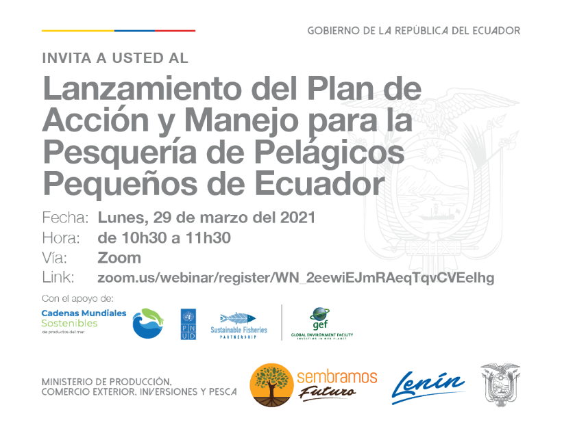 El día lunes, 29 de marzo del 2021, toda la población ecuatoriana dedicada a la pesquería de pelágicos pequeños tiene una cita muy importante que cumplir: conocer el nuevo Plan de Acción y Manejo de esa actividad económica.