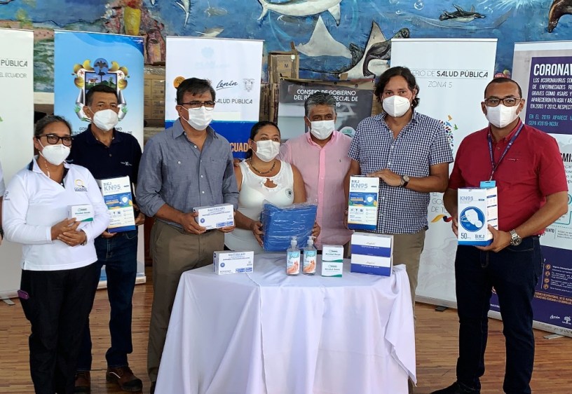 El sector local del turismo, en coordinación con el Consejo de Gobierno del Régimen Especial de Galápagos, el Ministerio de Salud Pública y el GAD municipal de Santa Cruz, donó 10.000 jeringuillas, 80.000 pares de guantes, más de 10.000 mascarillas (entre quirúrgicas y N95), 1.000 batas quirúrgicas, 40.000 pads (almohadillas) impregnadas de alcohol, alcohol en gel, entre otros materiales necesarios para la aplicación de la vacuna a los pobladores locales.