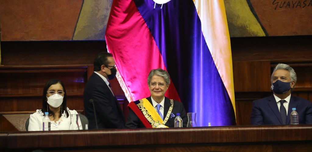 Con la imposición de la banda presidencial, Guillermo Lasso Mendoza fue posesionado oficialmente como nuevo presidente constitucional de la República del Ecuador. Releva en esa función al presidente saliente, Lenín Moreno Garcés.