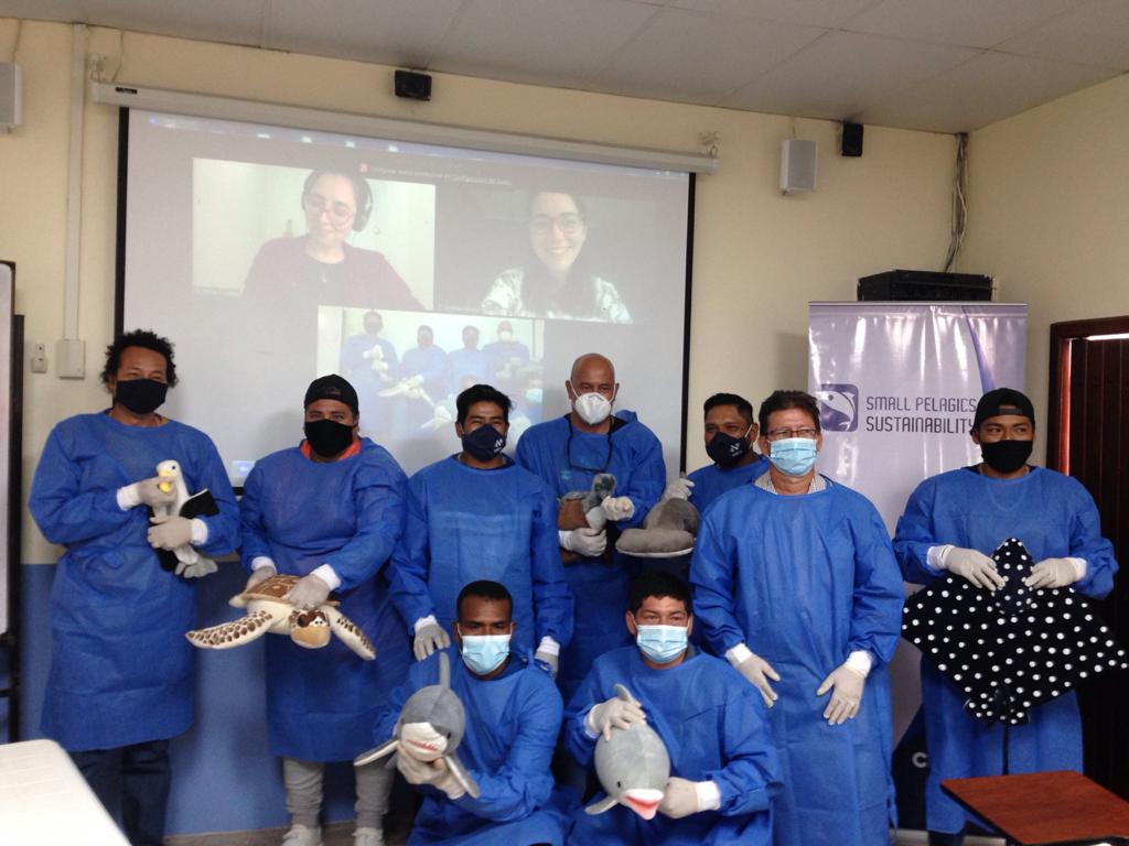 Hasta la fecha se ha capacitado a 122 pescadores que trabajan a bordo de 37 embarcaciones de las empresas socias. Las capacitaciones se desarrollan en cuatro módulos que permiten brindar, de forma dosificada, conceptos técnicos y perfeccionar las principales acciones a realizar a bordo, en un total de 10 horas académicas.