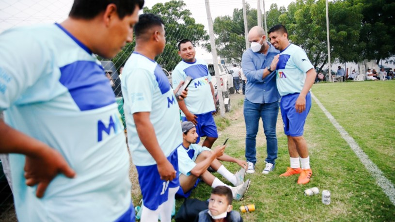 El gerente de la empresa, Miguel Cevallos, también participó en la cancha de fútbol.