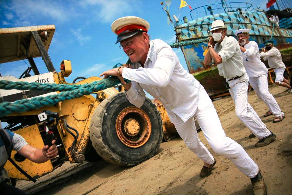 Con esa mira a bordo, el pueblo de San Mateo no podía permanecer impasible ante la prolija y compleja tarea de sacar el buque del agua y arrastrarlo con sumo cuidado hasta su destino final. Bastante gente acude a presenciar ese acto y no faltan quienes pueden ayudar y lo hacen solícitamente. Esto acontece desde el sábado 11 de septiembre del 2021.