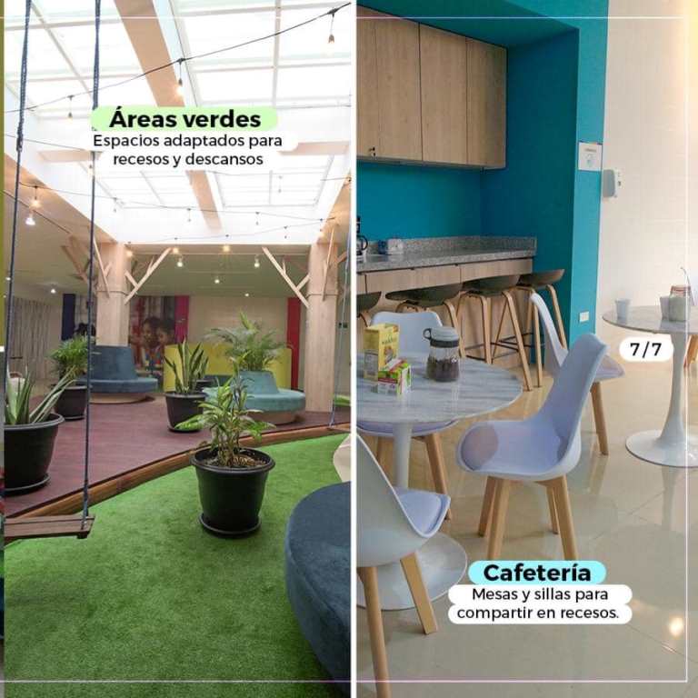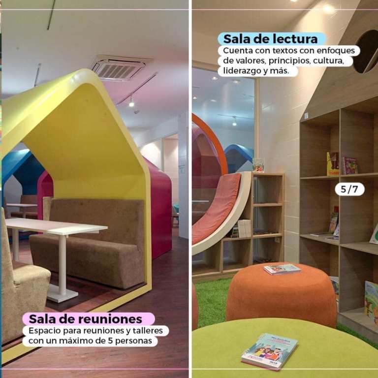 Moderno edificio, levantado frente al mar, con amplias salas equipadas para la interacción lúdica provechosa.