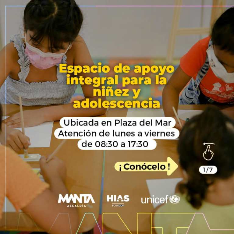 “Con el apoyo de UNICEF Ecuador e HIAS Ecuador inauguramos el espacio de apoyo integral Casa de la Niñez y la Adolescencia en Manta. Un lugar soñado que habíamos buscado con ansias aterrizarlo para nuestra ciudad, para nuestras niñas, nuestros adolescentes, para su crecimiento.