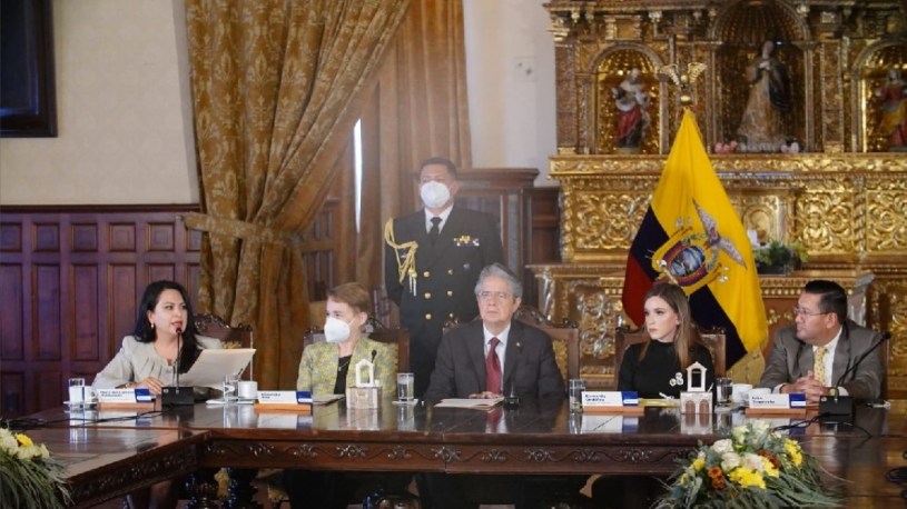 La cita, efectuada en el Salón Amarillo del Palacio de Carondelet, contó con la presencia del presidente de la República, Guillermo Lasso; de la ministra de Gobierno, Alexandra Vela; de la la secretaria de Derechos Humanos, Bernarda Ordóñez, entre otras autoridades nacionales.