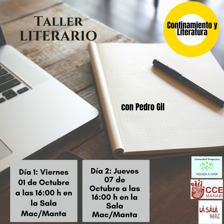 La fecha y hora para el inicio del taller, son: viernes 01 de octubre desde las 16h00, la primera parte; y, jueves 07 de octubre desde las 16h00, la segunda parte. Lugar: Terraza Jardín de la Sala MAC, de la Casa de la Cultura Ecuatoriana (CCE), núcleo de Manabí en la ciudad de Manta.