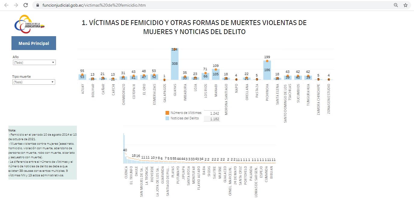 El 04 de agosto del 2021, el Consejo de la Judicatura (CJ) presentó al Ecuador la herramienta virtual FemicidiosEc, un mecanismo de libre acceso a la información estadística sobre femicidios y otras formas de muertes violentas contra mujeres en el país, así como acerca del seguimiento procesal de estos casos.