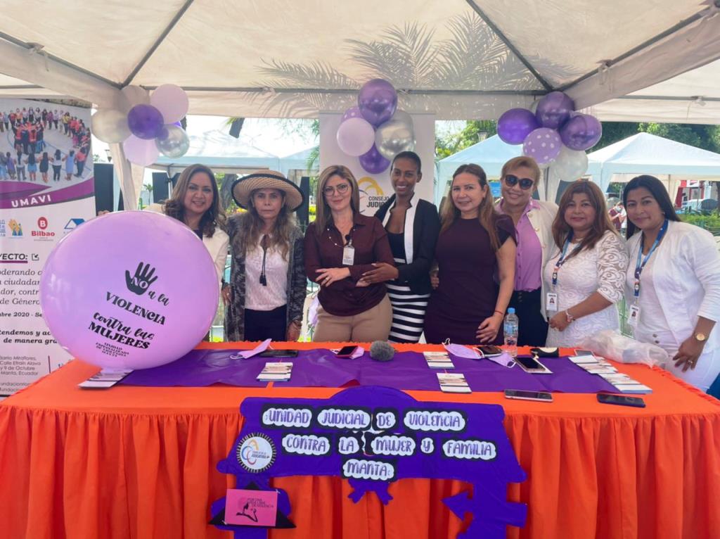 Las actividades iniciaron en Manta, con una Casa Abierta en la que el CJ participó con un stand de información sobre prevención y erradicación de la violencia. En Rocafuerte y Tosagua se realizaron marchas junto a grupos de mujeres y miembros de la sociedad civil.