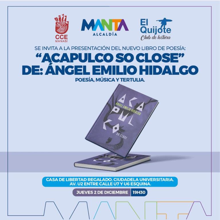 Con frecuencia son presentados al público nuevos libros con temáticas de autores diferentes que, mayoritariamente, hacen su vida en esta urbe o en otras de la provincia de Manabí. Pero no faltan autores de otras latitudes ecuatorianas, como es el caso de quien escribió “Acapulco So Close” (Traducción: Acapulco tan cerca) a presentarse el próximo jueves 2 de diciembre del 2021.