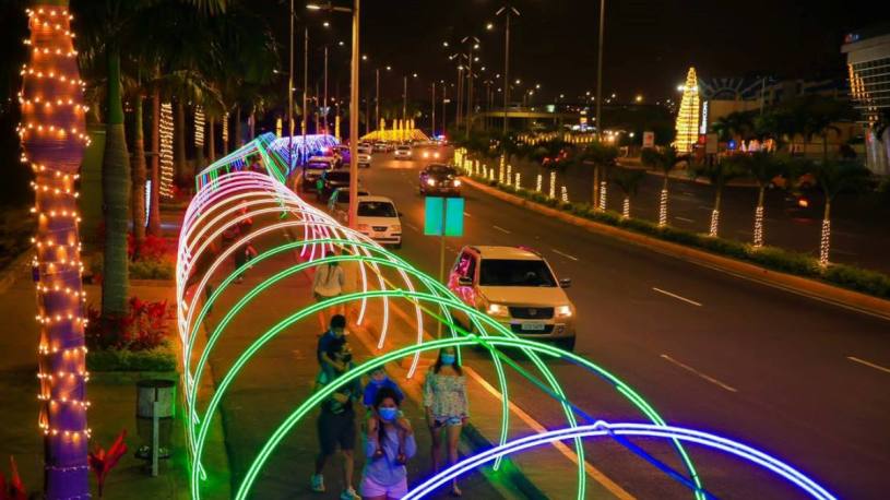 La imagen de ciudad moderna, en franco desarrollo, es resaltada en Manta (Ecuador) con luminotecnia de última generación que alude a la próxima celebración por Navidad.