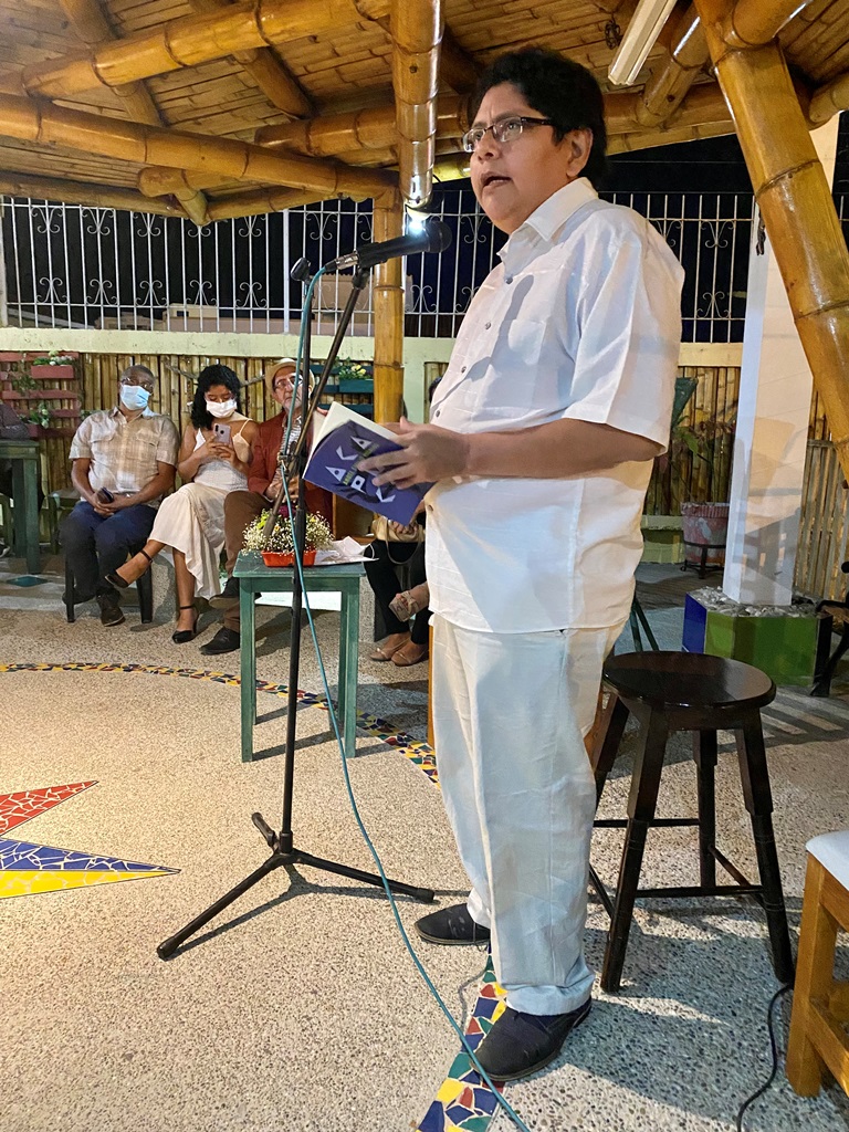 Llegó el momento de intervenir el protagonista de la noche, el escritor Ángel Emilio Hidalgo, destacando su procedencia ancestral manabita y trayéndonos a este maravilloso espacio varios poemas de su nuevo libro “Acapulco So Close”. Contándonos, también, razones ocultas del porqué de este nombre para la obra en mención.