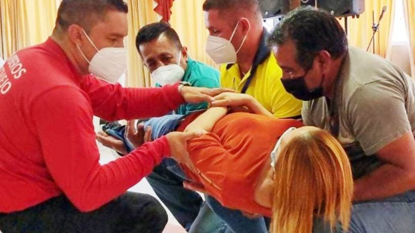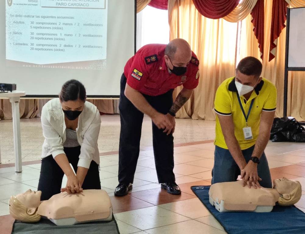 La capacitación se realizó con el apoyo del Servicio Nacional de Gestión de Riesgos y el Cuerpo de Bomberos de Portoviejo. Se abordaron los siguientes temas: evacuación, transportación de víctimas, primeros auxilios, uso y manejo de extintores, nociones básicas del gas licuado del petróleo (GLP), normas para proceder en casos de emergencia y medidas de autoprotección.
