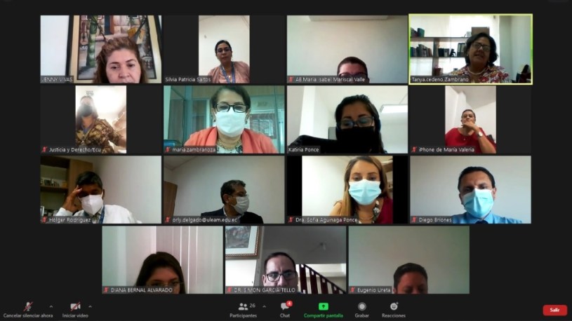 Los profesionales del Derecho que juzgan en las unidades de lo Civil, Laboral y de Familia, Mujer, Niñez, Adolescencia y Adolescentes Infractores (FMNA) de Manabí, participaron -el miércoles 26 de enero del 2022- en un conversatorio en el que se capacitó a los administradores de justicia con el fin de que dominen el procedimiento para derivar causas a las oficinas de Mediación de la provincia.